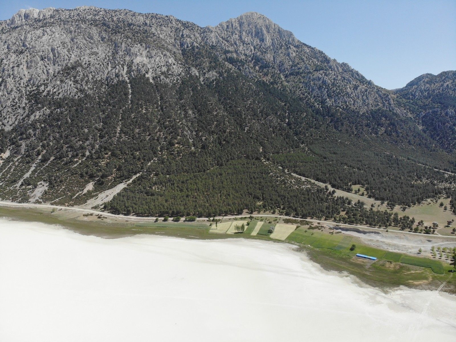 Tektonik kökenli bir oluşum olan Acıgöl'ün uydu fotoğrafları ise son yıllarda giderek etkisini artıran kuraklık ve bilinçsiz su kullanımının izlerini gözler önüne seriyor. 1970'li yıllarda 160 kilometrekare olan yüzey alanı, 2021 yılında 40 kilometrekarenin altına inen gölün, suların kıyıdan yaklaşık 500 metre çekilmesiyle ciddi bir bölümünün de tamamen kuruduğu görülüyor.