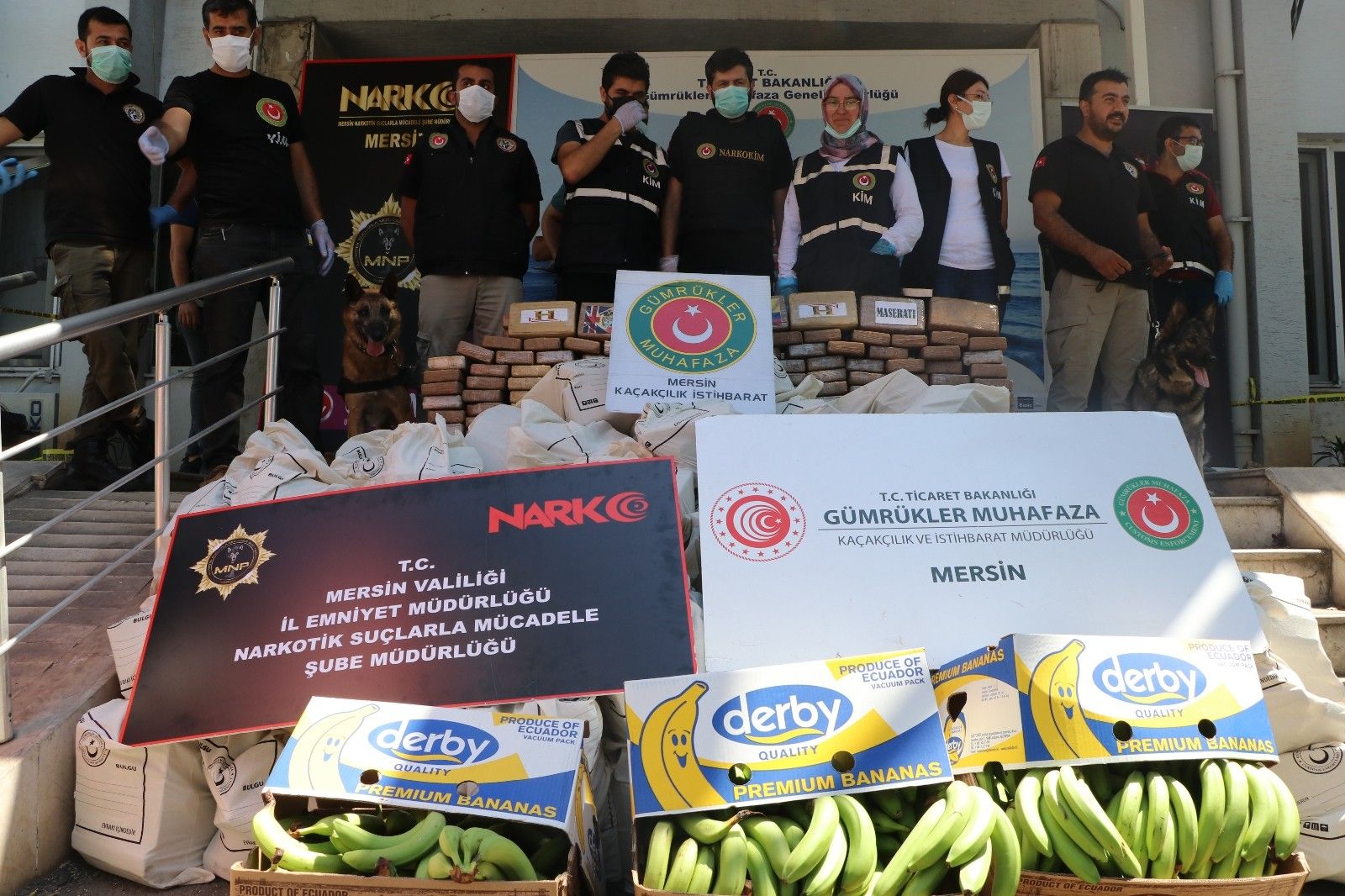 Mersin İl Emniyet Müdür Yardımcısı Murat Cihan, burada yaptığı açıklamada, Mersin Emniyet Müdürlüğü ve Mersin Gümrük Muhafaza Kaçakçılık ve İstihbarat Müdürlüğü ile beraber yaklaşık bir aydır konuyu takip ettiklerini söyledi. Cihan, "Ekvator ülkesinden Mersin Limanına muz yüklü bir gemide kokain geleceği bilgisi üzerine yapılan çalışmamız başarılı bir yakalamayla bugün sona ermiştir. Bu yakalamada 1 ton kokain yakalaması gerçekleşmiştir. Çalışmalarımız devam etmekte, uyuşturucuyla mücadelemiz aynı azim ve kararlılıkla devam etmektedir" dedi.