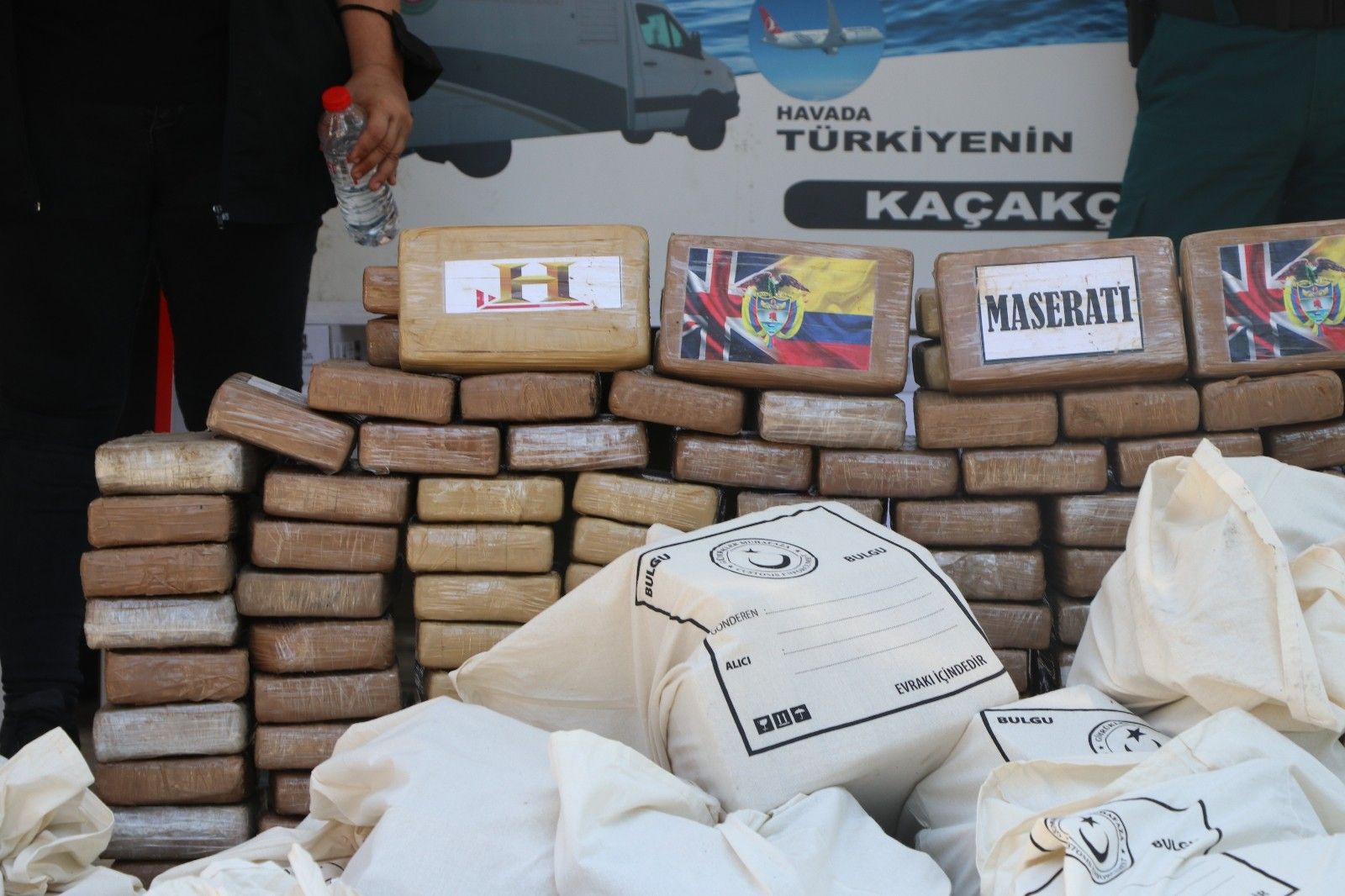 Ele geçirilen kokain, Ticaret Bakanlığı Orta Akdeniz Gümrük ve Dış Ticaret Bölge Müdürlüğü Mersin Gümrük Muhafaza Kaçakçılık ve İstihbarat Müdürlüğü binası bahçesinde sergilendi.