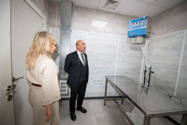 Açılış öncesi hastanedeki son hazırlıkları yerinde inceleyen İzmir Büyükşehir Belediye Başkanı Tunç Soyer, Genel Sekreter Yardımcısı Şükran Nurlu’dan bilgi aldı. Başkan Tunç Soyer, “Çok ciddi bir yatırımla, sadece İzmir’in değil Türkiye’nin en büyük hastanesini hizmete açacağız. Olağanüstü yüksek standartta hastane ekipmanı ile donatıldı. Röntgen, ultrason, ameliyathane, kuvöz gibi her türlü eksiğin tamamlandığı bir hastaneyi kente kazandırıyoruz. İzmirlilerin içi rahat etsin, sokak hayvanlarımıza 7/24 hizmet verecek olağanüstü donanımlı teknik ekibimiz var. Son derece yüksek standartta hastanemiz var. Onları doyuracak sağlıklı lezzetli mamalarımız var. Burası dört dörtlük bir tesis” dedi.