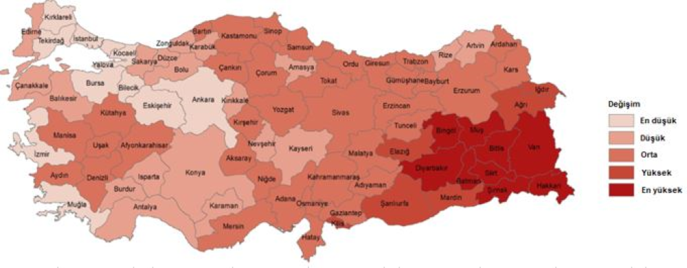 Okuma yazma bilen oranının 2008-2022 yılları arasında en yüksek puan artışı gösterdiği ilk beş il sırasıyla Şırnak, Hakkâri, Van, Siirt ve Muş oldu. En düşük artış gösteren ilk beş il ise sırasıyla Eskişehir, Ankara, Yalova, İstanbul ve Bilecik olarak gerçekleşti.