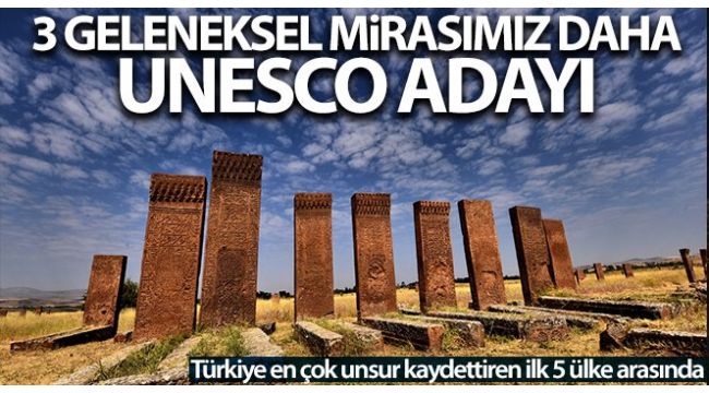 Kültür ve Turizm Bakanlığı, Türkiye'nin geleneksel mirasları "Geleneksel Ahlat Taş İşçiliği", "Sedef Kakma Sanatı" ile "İpek Böcekçiliği ve Dokuma için İpeğin Geleneksel Üretimi"nin UNESCO Somut Olmayan Kültürel Miras Listesi'ne alınması için başvuruda bulundu.