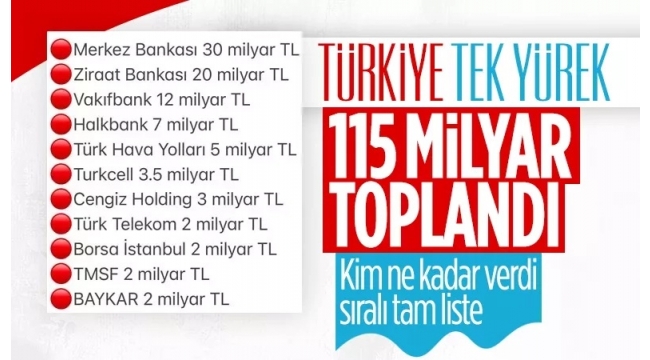 Tüm televizyonlarda canlı yayınlanan "Türkiye Tek Yürek" isimli yardım kampanyasında kim ne kadar bağışta bulundu..