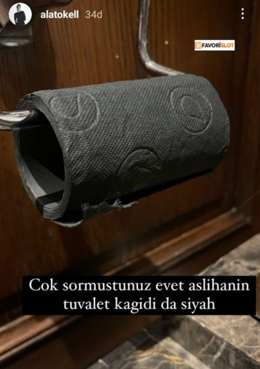 Tokel, paylaştığı fotoğrafı; "Çok sormuştunuz; evet, Aslıhan'ın tuvalet kağıdı da siyah." yazdı.