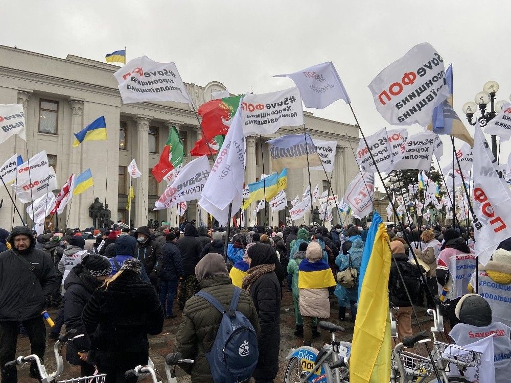 Ukrayna'da hükümetin korona virüs salgınına karşı uyguladığı karantina tedbirleri ve 1 Ocak 2022 tarihinden itibaren küçük çaplı işletmelerin ve bireysel şirketlerin yazar kasa kullanımını zorunlu hale getirmek istemesi halk tarafından protesto edildi. Başkent Kiev'de bir araya gelen yüzlerce kişi 3 ana caddeyi trafiği kapatarak, şehir merkezine yürüdü. Yürüyüşün sonunda Ukrayna Meclisi önünde toplanan göstericiler, eylemlerine meclis önünde devam etti. Polisin geniş güvenlik önlemleri aldığı protestoda herhangi bir şiddet olayı yaşanmadı.