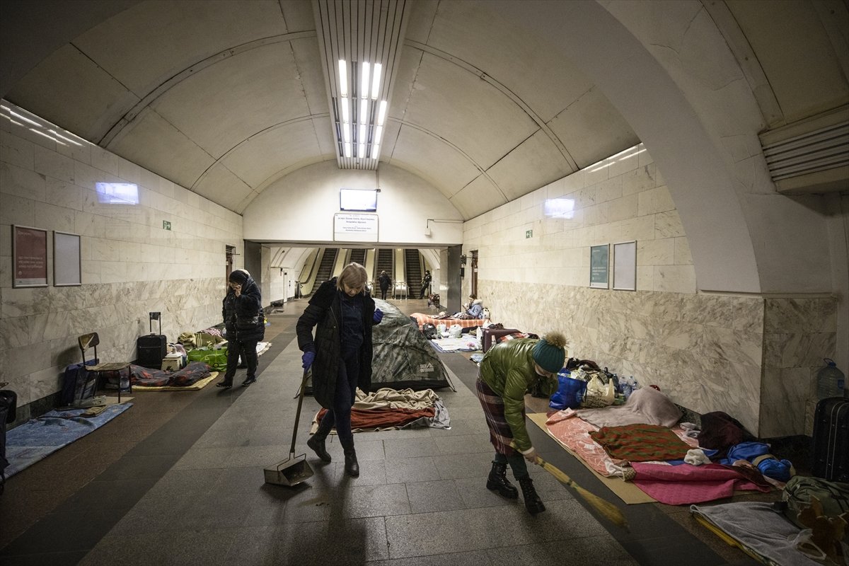 Diğer yandan ülkelerini terk etmeyenler sığınaklarda ve metro istasyonlarında kalmaya devam etti.