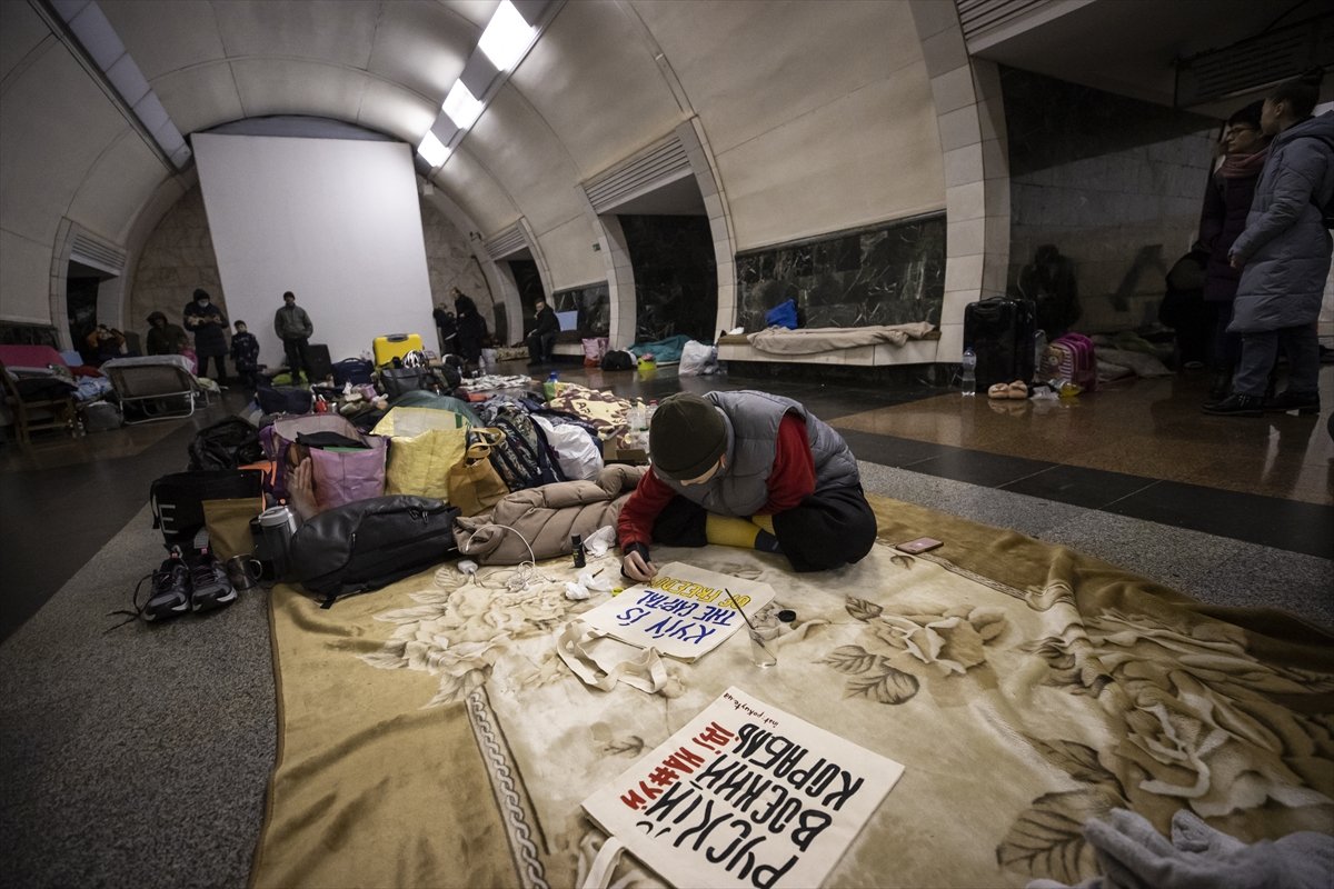 Başkent Kiev’deki Dorogojiçi metro istasyonu, Rus saldırılarından korunmak isteyen sivil vatandaşların sığınağı haline geldi.