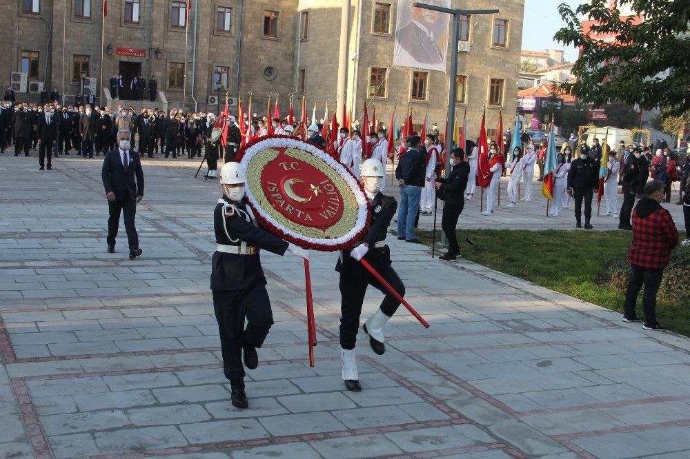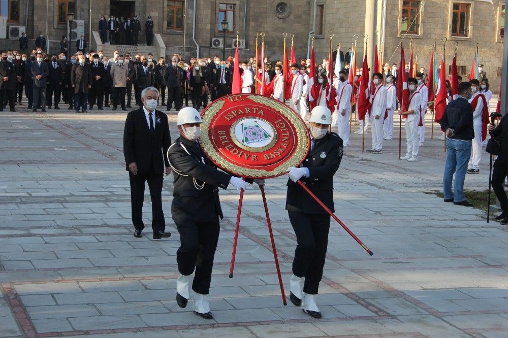 Türkiye Cumhuriyeti'nin kurucusu Gazi Mustafa Kemal Atatürk'ün ebediyete intikal edişinin 82. yılı dolayısıyla ülke genelinde olduğu gibi Isparta'da da anma töreni düzenlendi. 15 Temmuz Demokrasi ve Cumhuriyet Meydan'ında gerçekleştirilene törene Isparta Valisi Ömer Seymenoğlu, Isparta Belediye Başkanı Şükrü Başdeğirmen, Garnizon Komutanı Albay Mustafa Kahraman, protokol üyeleri, öğrenciler, askeri erkan ve gaziler katıldı. Tören Atatürk anıtına çelenk sunumuyla başladı. Sırasıyla valilik, garnizon komutanlığı ve belediye çelenkleri Atatürk Anıtına konuldu. Çelenklerin sunulmasının ardından sirenlerin çalmasıyla birlikte kentte hayat 2 dakikalığına durdu. Buradaki tören İstiklal Marşı'nın okunmasıyla sona erdi.