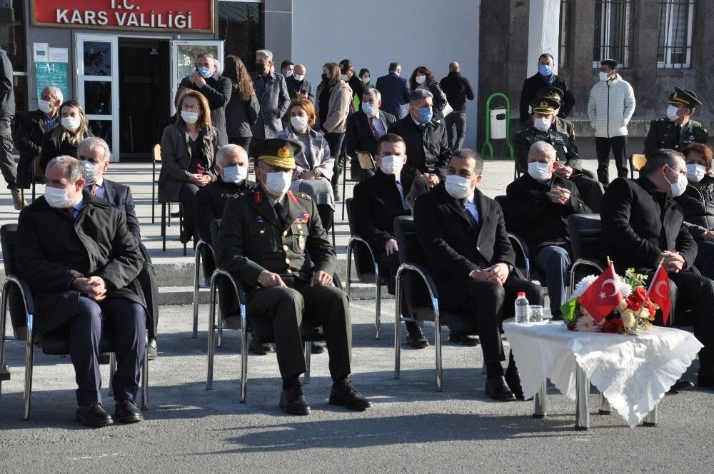 Hükümet Konağı önünde düzenlenen törene Vali, Belediye Başkan Vekili Türker Öksüz, Garnizon Komutanı Tuğgeneral Özgür Nuhut, Kafkas Üniversitesi Rektörü Prof. Dr. Hüsnü Kapu, Başsavcı Soner Aygün, AK Parti Kars İl Başkanı Adem Çalkın, MHP İl Başkanı Tolga Adıgüzel, siyasi parti temsilcileri, öğretmenler ve öğrenciler ile askeri erkan katıldı.