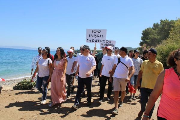 Özdağ, yürüyüş boyunca sahilde denize giren vatandaşlarla zaman zaman sohbet etti. Yürüyüşün ardından kalabalık dağıldı. (DHA)