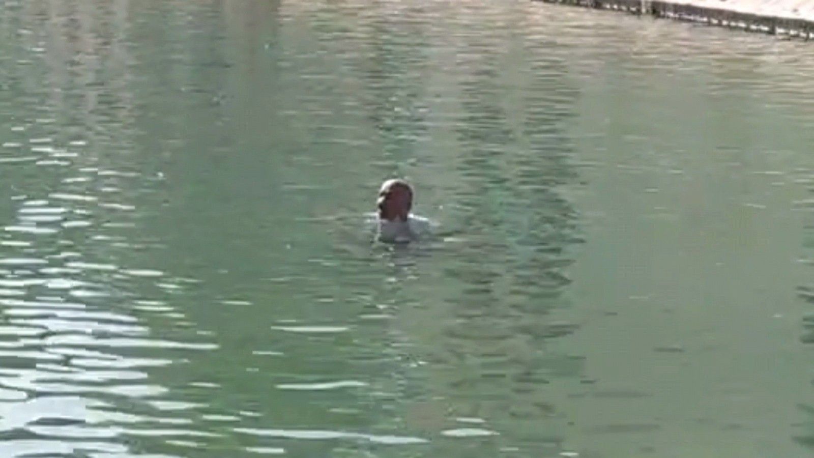 Şanlıurfa'da bulunan Balıklıgöl'de ilginç bir olay yaşandı. Bir şahıs herkesin gözü önünde suya girerek balıklarla birlikte yüzdü.