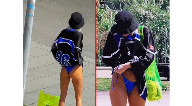 Ünlü manken sokakta bikinisinin ipini çözdü