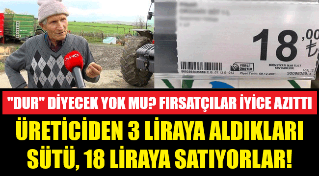 Son günlerde sütün litre fiyatı marketlerde 18 lirayı buldu. Oysa üretici 3 lira 30 kuruşa satıyor. Çatalca'da süt üreticiliği yapan Recep Karataban, "Toptancı 3 liraya topluyor artık değerlendirip 10 lira ve üzeri insanlara acımadan satıyorlar" dedi.