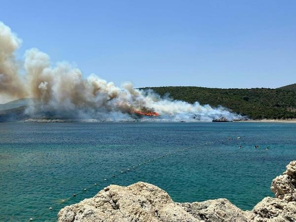 İzmir'in Urla ilçesinde makilikte başlayan yangının, enerji nakil hattından çıktığı tespit edildi.