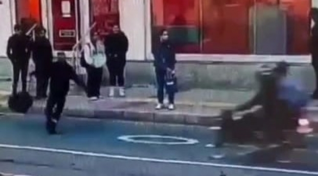 Motosiklet sürücüsü vurmanın etkisiyle dengesini kaybedip arkasındaki yolcuyla birlikte yola düşüp, metrelerce yerde sürüklendi. Çantayla gençlere vuran kimliği belirsiz adam ise hiçbir şey olmamış gibi çantasını alıp ortadan kayboldu.