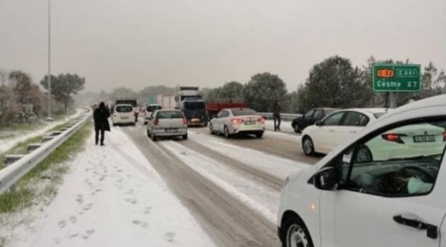 Dün akşam saatlerinde başlayan kar yağışı Urla ve Çeşme İlçesinde etkili oldu. Çeşme Otoyolu ile eski yol, zincirsiz çıkan araçlar ve kazalar nedeniyle bir süre kapandı.