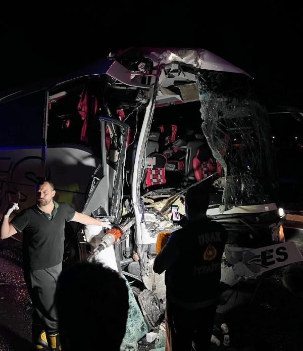 Uşak'ta yolcu otobüsü, TIR'a çarptı; 1 ölü, 39 yaralı