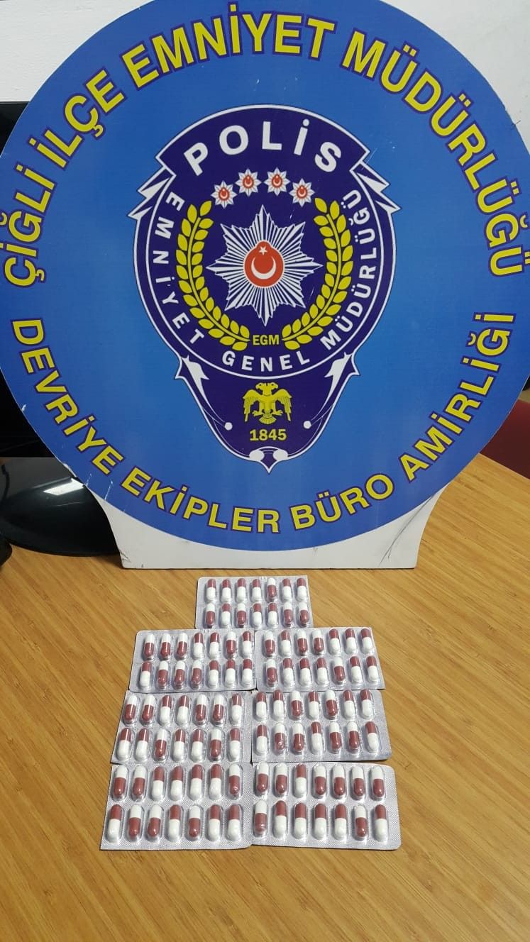 Çiğli İlçe Emniyet Müdürlüğü ekipleri, dün gece saatlerinde Anadolu Caddesi-Maltepe Caddesi kavşağı kesişiminde asayiş uygulaması gerçekleştirdi. Uygulamayı gören şüpheli sürücülerin, noktanın 100 metre gerisinde bulunan akaryakıt istasyonuna kaçtığını öğrenerek, akaryakıt istasyonunda önlem amaçlı bulunan polis ekipleri, burada bir otomobilin aniden istasyona giriş yaptığını fark etti. Aracın yanına giden ekiplerin yaptığı kontrolde araç sürücüsü H.B.'nin (27) şüpheli davranışları üzerine arama yapıldı. Yapılan aramada otomobilin torpidosunda 98 adet uyuşturucu hap ele geçirildi.