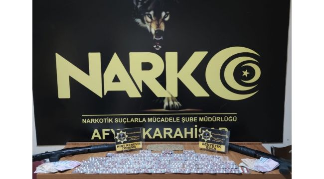 Afyonkarahisar İl Emniyet Müdürlüğü Narkotik Suçlarla Mücadele Şube Müdürlüğü'nce yapılan sokak çalışmalarında 3 ikamet ve 2 araç içerisinde aramalar yapıldı. Yapılan aramalarda; 439 adet yeşil reçeteye tabi sentetik ecza, suçtan elde edildiği değerlendirilen 3 bin 795 TL para, 2 adet ruhsatsız pompalı tüfek, 103 gram kenevir tohumu ele geçirildi.