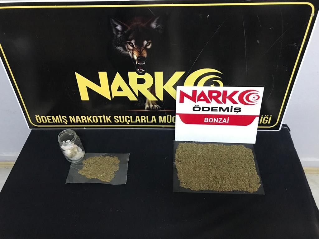 Ödemiş Narko Grup Amirliği ekipleri, ilçeye bağlı Emmioğlu Mahallesi'nde bulunan bir adreste uyuşturucu madde bulundurulduğuna dair edindiği bilgi üzerine çalışma başlattı. Harekete geçen ekiplerin başsavcılıktan alınan izin doğrultusunda gerçekleştirdiği aramada, siyah çanta içerisinde bulunan bir tarak dikkatlerden kaçmadı. Tarağı kontrol eden polis ekiplerinin yaptığı incelemede tarak içerisine gizlenmiş sentetik kannabinoid (bonzai) maddesi ele geçirildi. Adreste yapılan aramalarda toplam 75 gram sentetik kannabinoid (bonzai) maddesi bulundu.