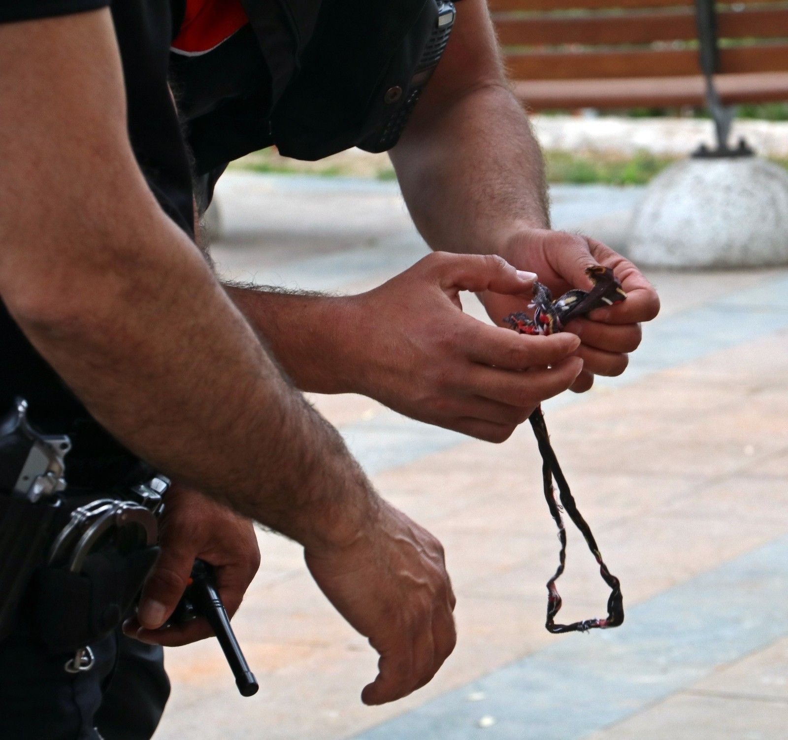 Olay, saat 16.30 sıralarında Muratpaşa ilçesi Yavuz Özcan Parkı'nda meydana geldi. Edinilen bilgiye göre, devriye gezen yunus timleri, parktaki banklara oturan şüphelendikleri bir kişinin kimliğini sorgulamak ve üzerini aramak istedi. Kimliğini vermeyip üzerini aratmayan kişi, ardından üzerinden çıkardığı neşterle bir anda boğazını kesti. İsminin Kerem A. (37) olduğu öğrenilen şahıs için sağlık ekiplerinden yardım talep edildi. Kerem A.'nın üzerinde arama yapan ekipler, neşterin yanı sıra suikast kalemi, ekmek bıçağı, dikiş makası, bir miktar uyuşturucu madde ile madeni para ele geçirdi. Kerem A. ise sağlık ekipleri gelinceye kadar kanayan bölgesini tamponla durdurmaya çalıştı.