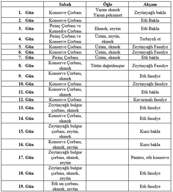 ÇANAKKALE Onsekiz Mart Üniversitesi (ÇOMÜ) Atatürk ve Çanakkale Savaşlarını Araştırma Merkezi (AÇASAM) Müdür Yardımcısı Öğretim Görevlisi İsmail Sabah, arşiv belgelerindeki araştırmasında, savaşta askerlerin beslenmesiyle ilgili, çeşitli zamanlarda sosyal medyada paylaşılan üzüm hoşaflı 'Çanakkale Menüsü'nün yanlış olduğunu belirledi.