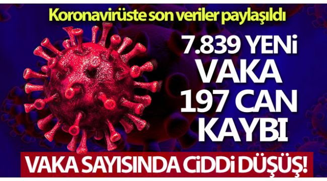 Sağlık Bakanlığı, son 24 saatte 197 kişinin korona virüsten hayatını kaybettiğini, 7 bin 839 yeni vaka sayısının olduğunu açıkladı.Sağlık Bakanlığının Covid-19 bilgilendirme...