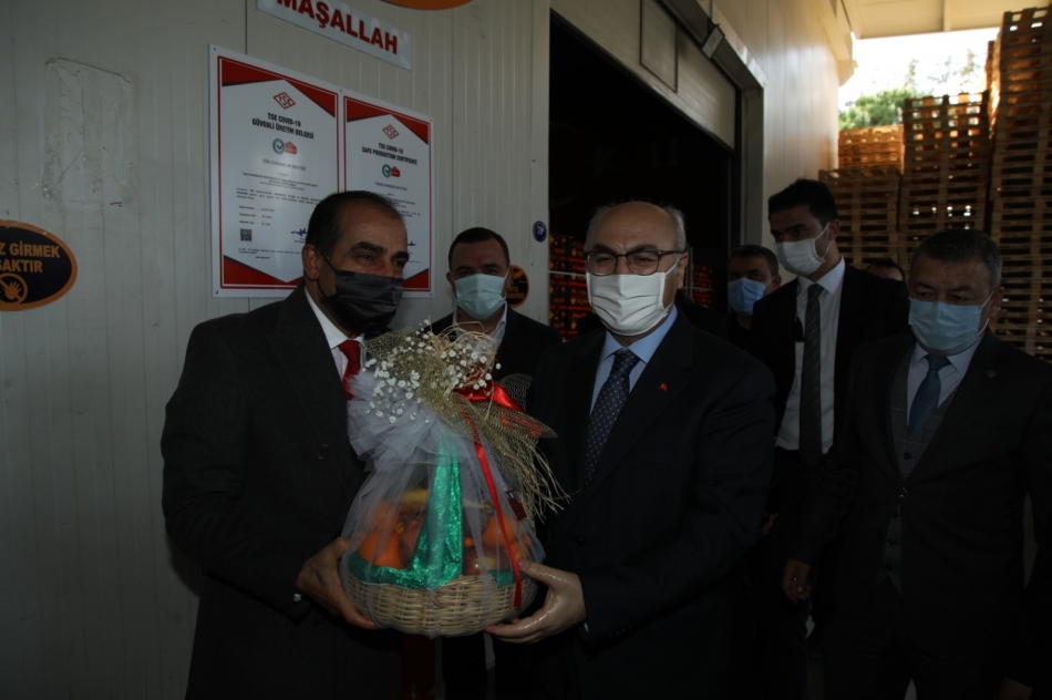 Vali Köşger, pandemi sürecinde yoğun bir şekilde çalışarak insanlarun gıda ihtiyacını karşılamasında büyük emek veren işletme ve bahçelerde çalışan, sektörün tüm çalışanlarına başarılı çalışmalar dileklerini ileterek tesisten ayrıldı.