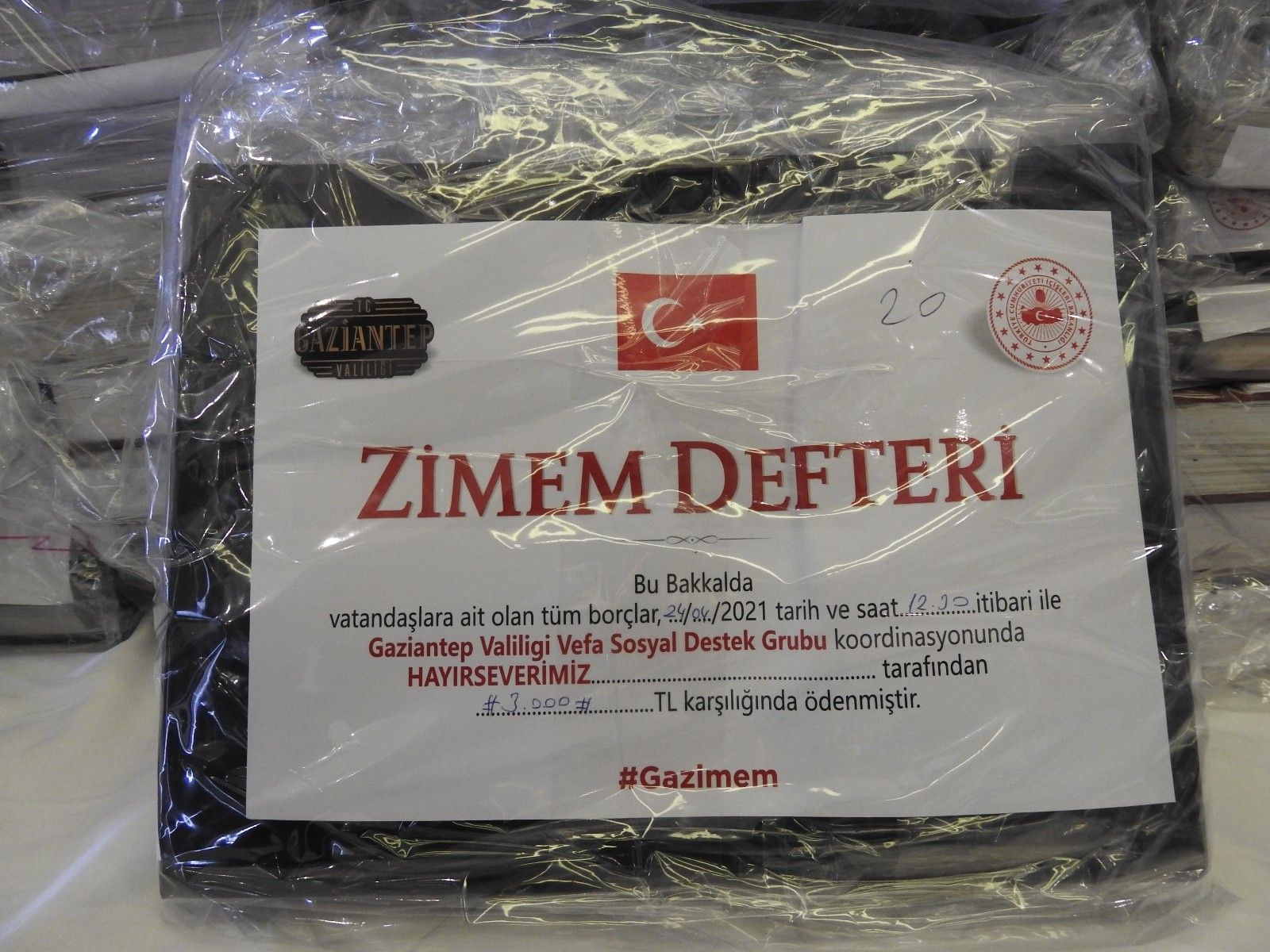 Gaziantep Valiliği koordinasyonunda hayırseverlerin desteğiyle uygulanan zimem geleneğiyle 400 bakkal ve 120 pide fırınındaki veresiye defterleri satın alınarak, 29 bin 500 ailenin borcu ödendi. Toplam 5 milyon 200 bin TL'lik veresiye borcu kapatıldı.