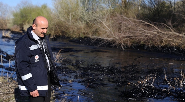 Asfalt malzemesiyle kaplanan bazı buğday ekili alanlarda zarar oluşurken, zift şantiye yakınındaki dereye de karıştı.