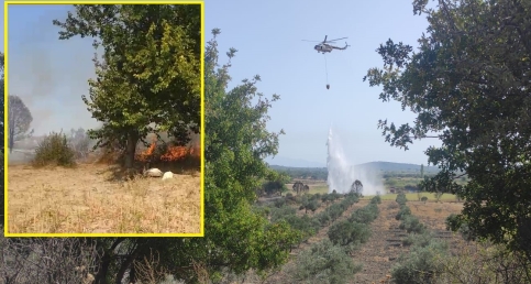 Altınova Boğazbahçe mevkiinde zeytinlik alanda çıkan yangın itfaiye ve orman genel müdürlüğü helikopterleri ile anında söndürüldü.