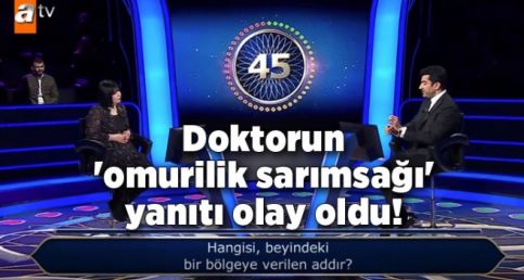‘Bir fikrim var ama telefonla joker hakkımı kullanmak istiyorum’ diyen yarışmacı, doktor olan bir arkadaşını aradı. Ancak sürenin bitmesine yakın telefondaki kişi ‘Omurilik sarımsağı’ cevabını verdi.