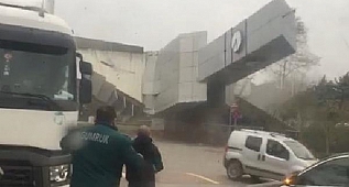 Çatalca Serbest Bölge'de kapı girişindeki saat kulesi lodosun etkisiyle devrildi. Devrilen saat kulesi parçalandı. O anlar saniye saniye kameraya yansıdı.