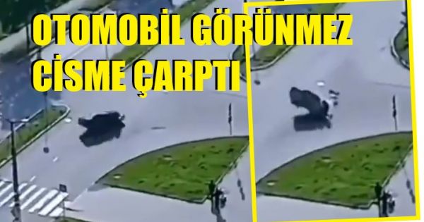 İnanılmaz! Otomobil görünmez bir cisme çarpıp takla attı