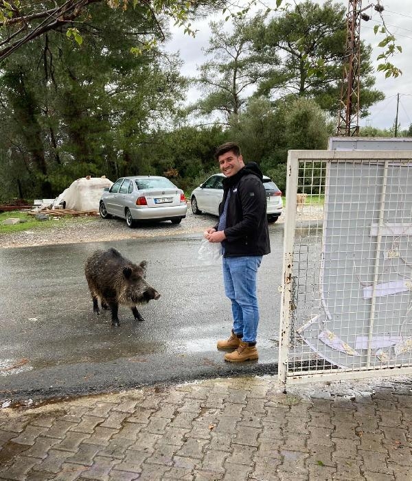 MUĞLA'nın Bodrum ilçesinde, geçen yıl yaralı olarak bulunan ve tedavisinin ardından doğal yaşamına bırakılan 'Ceyar' adı verilen yaban domuzu, tedavi gördüğü bakımevinden kopamıyor. Her gün geldiği bakımevinde, belediye personeli tarafından beslenen Ceyar, tekrar ormana dönüyor.
