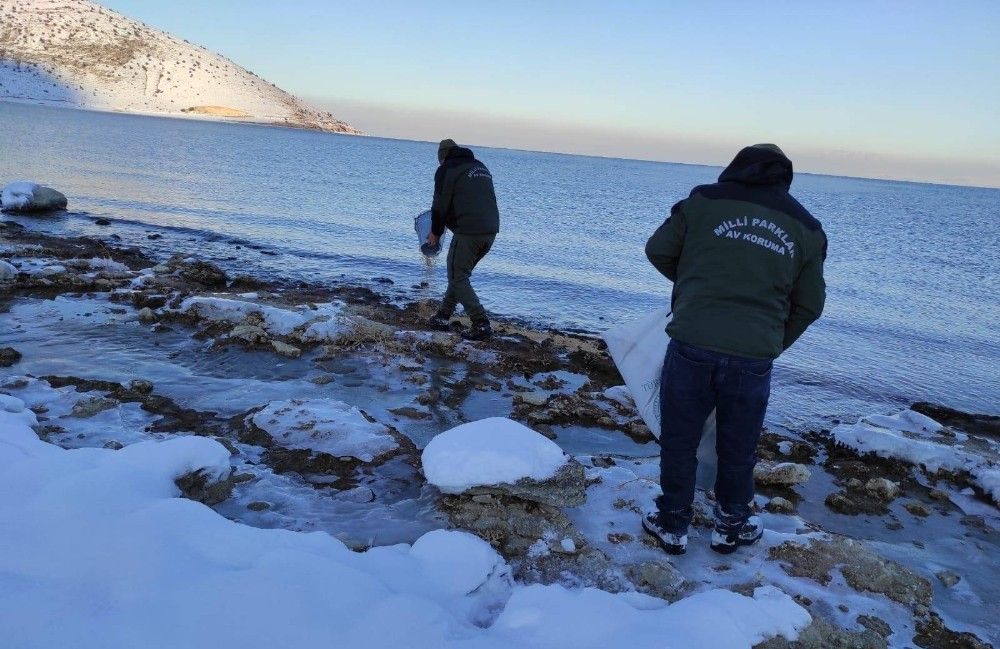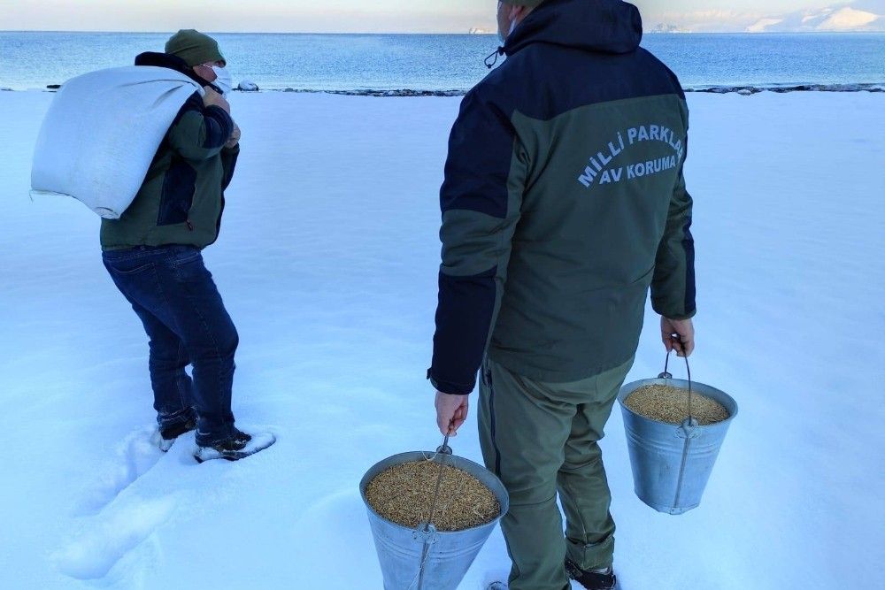 Tarım ve Orman Bakanlığı Doğa Koruma ve Milli Parklar 14. Bölge Müdürlüğü'ne bağlı Van Doğa Koruma ve Milli Parklar İl Şube Müdürlüğü ekipleri, soğuk ve sert geçen kış aylarında doğal yaşam alanlarında bulunan yabani canlıların hayatta kalabilmesi için yem bırakma çalışmaları devan ediyor. Van Gölü havzasında yaşayan yüzlerce kuş türü için yem bırakma çalışmaları aralıksız devam ederken görevliler, araçların giremediği alanlara yabani kuşlar için sırtlarında taşıdıkları yem torbaları ile yem bırakılıyor.