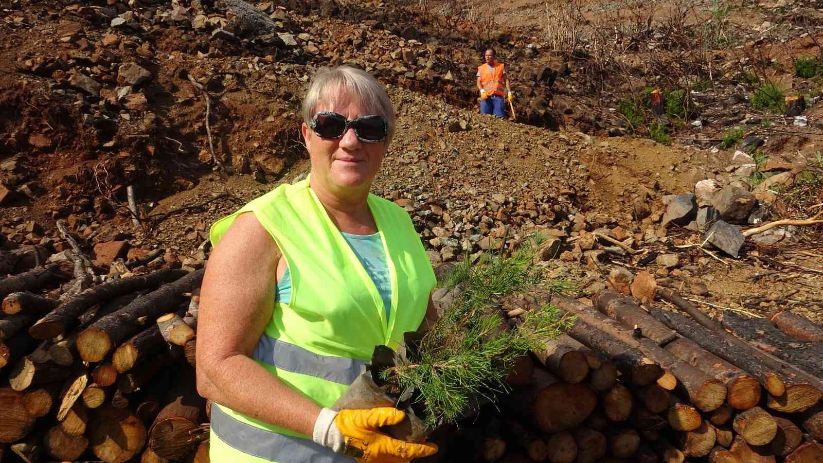 İçmeler Mahallesi'nde doğa gönüllüsü olarak fidan dikimine katılan Rus vatandaşı Violetta Yeşil '' Ben Rus'um burada çam ağacı fidanları dikiyoruz, tohumlar ekiyoruz. Çok yoruluyoruz ama her yer yeniden yeşil olacak '' dedi.