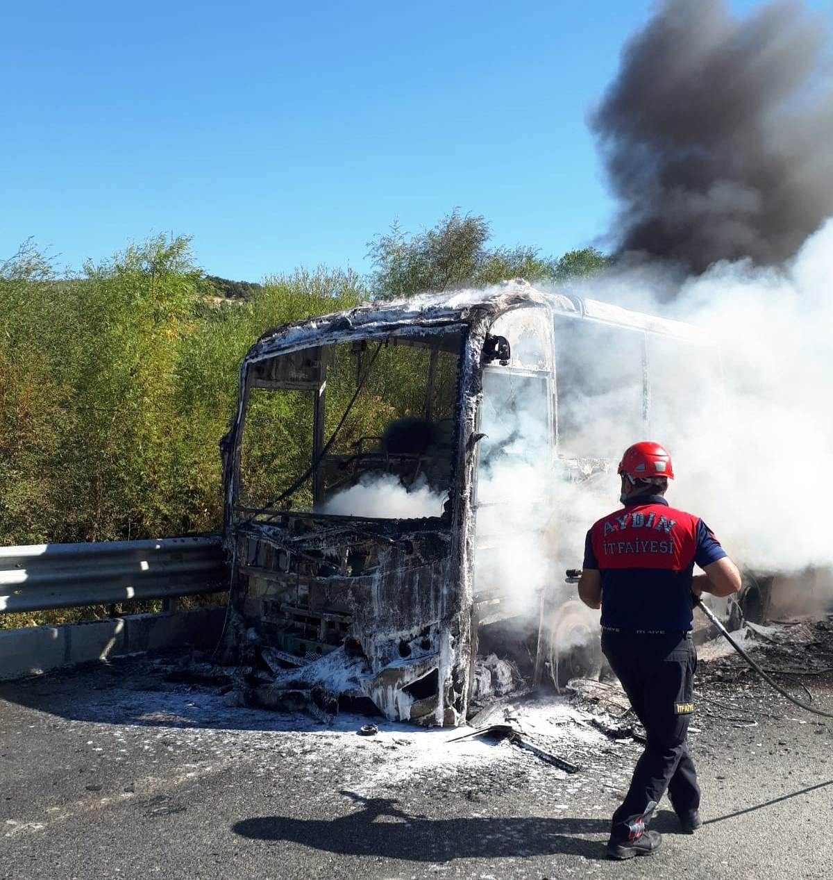 Edinilen bilgiye göre, Söke'den Kuşadası istikametine seyir halinde olan özel bir firmaya ait tur otobüsünde, çevre yolu Yaylaköy Mahallesi sınırları içerisinde yangın çıktı. Otobüs şoförü dumanları fark ederek, otobüsü yol kenarında durdurdu. Otobüs içerisinde bulunan yolcular araçtan indirilerek, güvenli bir bölgeye götürüldü. Olay yerine gelen Aydın Büyükşehir Belediyesi İtfaiye ekipleri otobüsü saran alevlere müdahalede bulundu. İtfaiye ekipleri yaptıkları çalışmalar ile alevleri söndürürken, otobüs küle döndü.