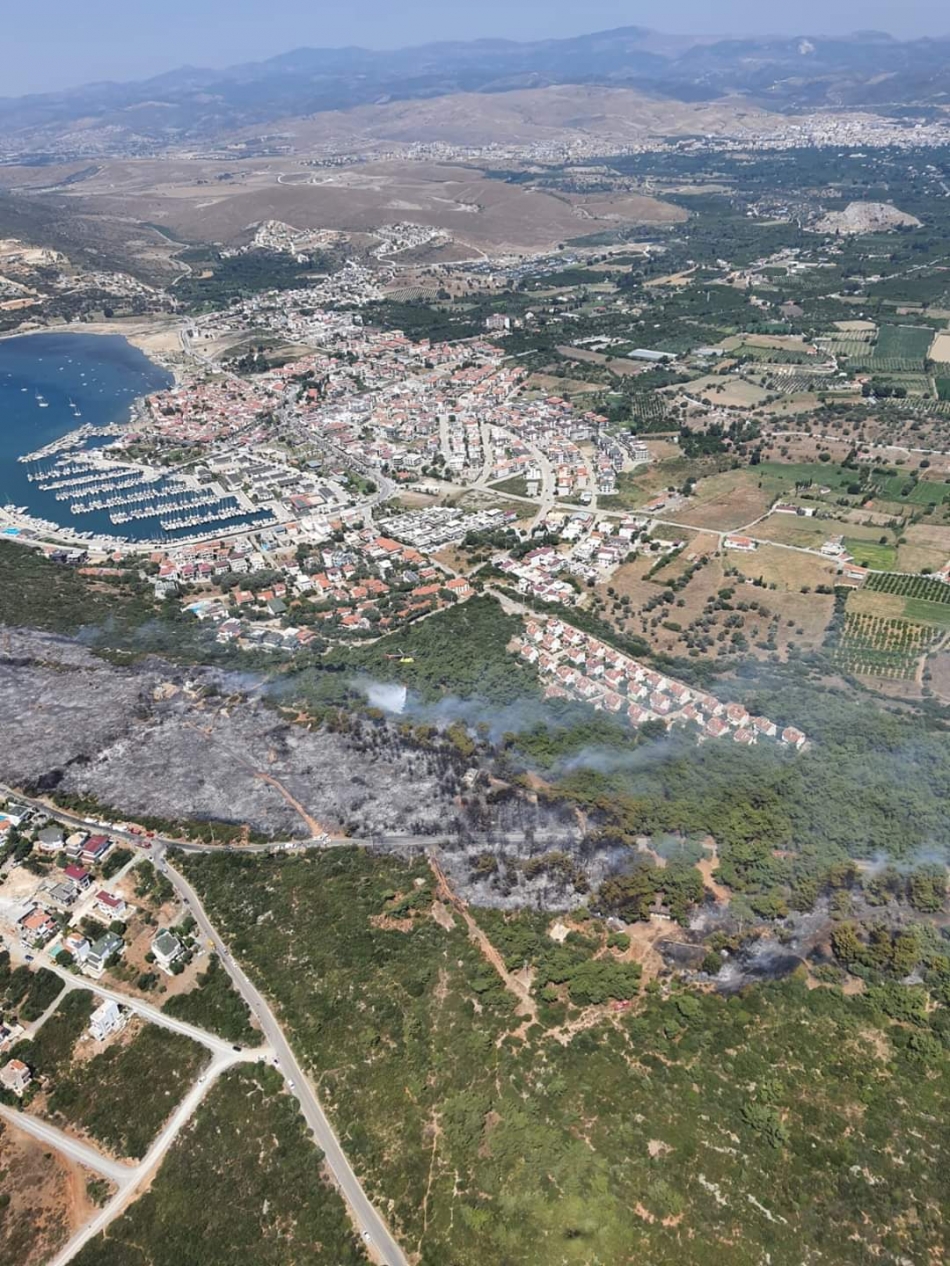 Ardından İzmir Orman Bölge Müdürlüğüne bağlı kuvvetlerin de havadan ve karadan verdiği destek ile yangın, yazlık sitelere girmeden, can ve mal kaybı yaşanmadan yaklaşık 1 saat içinde kontrol altına alındı. Özellikle müdahale eden 3 su atar helikopter ve 1 yangın uçağı, yangının kontrol altına alınmasında aktif rol oynadı.