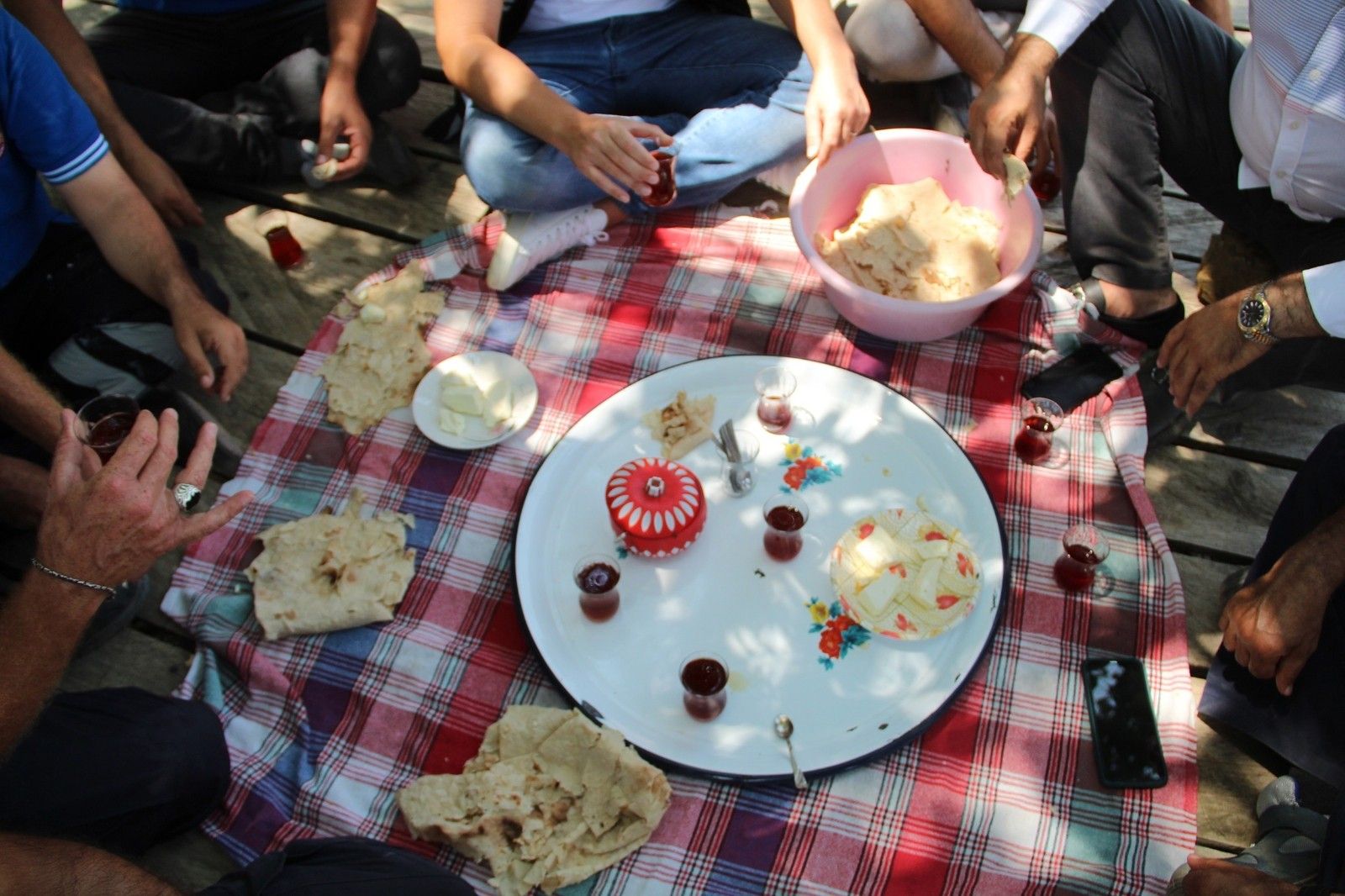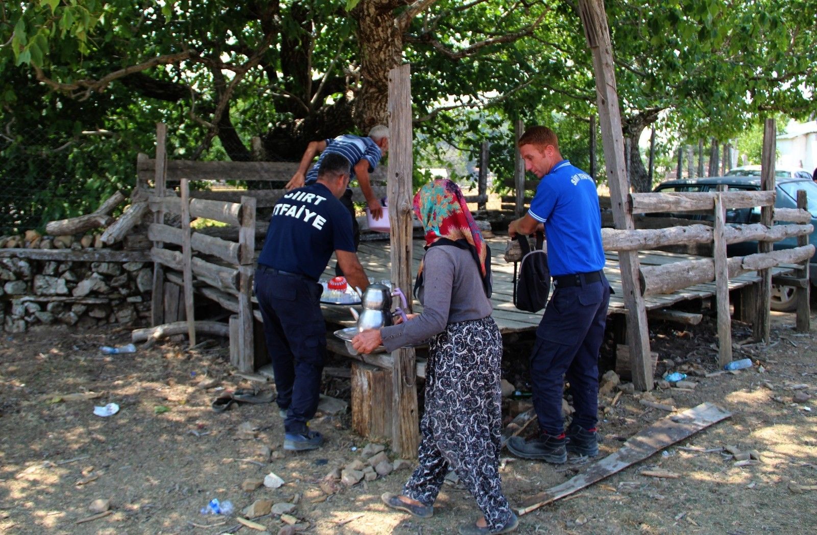 53 yaşındaki 3 çocuk annesi Ayşegül Aydın, hazırladığı yufka ekmeği ve köy peynirini, çay demleyerek itfaiye ekiplerine getirdi. Görev başında olan ekipler, ceviz ağacı altındaki çardakta hazırlanan sofrayı geri çevirmedi.