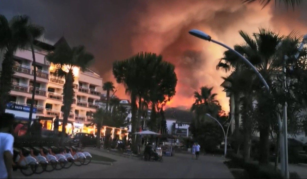 Muğla'nın Marmaris ilçesindeki yangın nedeniyle Armutalan ve Siteler bölgesinde yer alan yaklaşık 20 otelde konaklayan yerli ve yabancı turistler, otellerden çıkarılarak güvenli alan olarak kabul edilen sahil bölgesine geldi. Plaja gelen turistlerin yangın nedeniyle oluşan tehlikenin geçeceği süreye kadar burada bulunacakları öğrenildi. Sahilde bekleyen yerli ve yabancı turistler, geceyi burada geçireceklerini ifade etti.