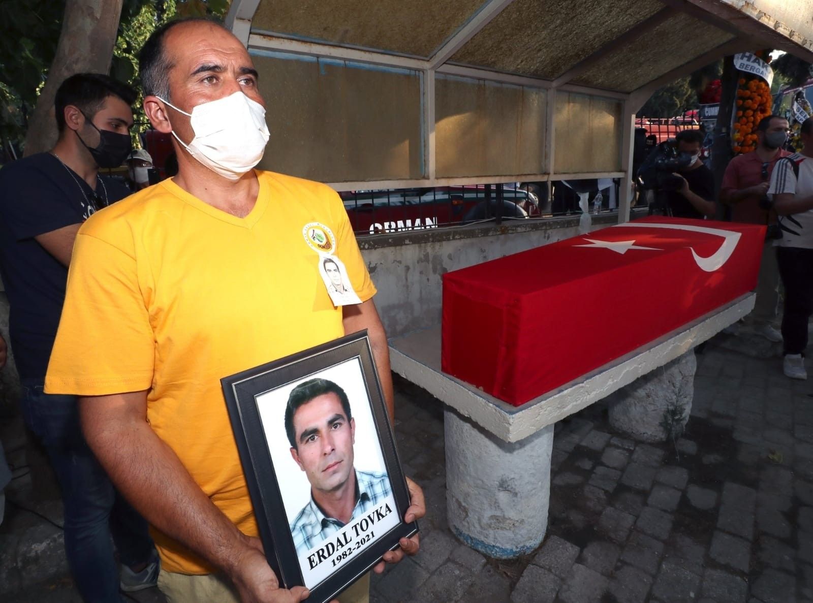 Antalya'nın Manavgat ilçesindeki orman yangınını söndürme çalışmaları esnasında şehit düşen orman işçisi Erdal Tovka (39) için İzmir'de cenaze töreni düzenlendi. Cenaze töreninde Tovka'nın yakınları gözyaşı dökerken, şehidin Manavgat'a gitmek üzere hazırlanırken ailesinden helallik istediği ve "Geri gelemeyebilirim" dediği öğrenildi.