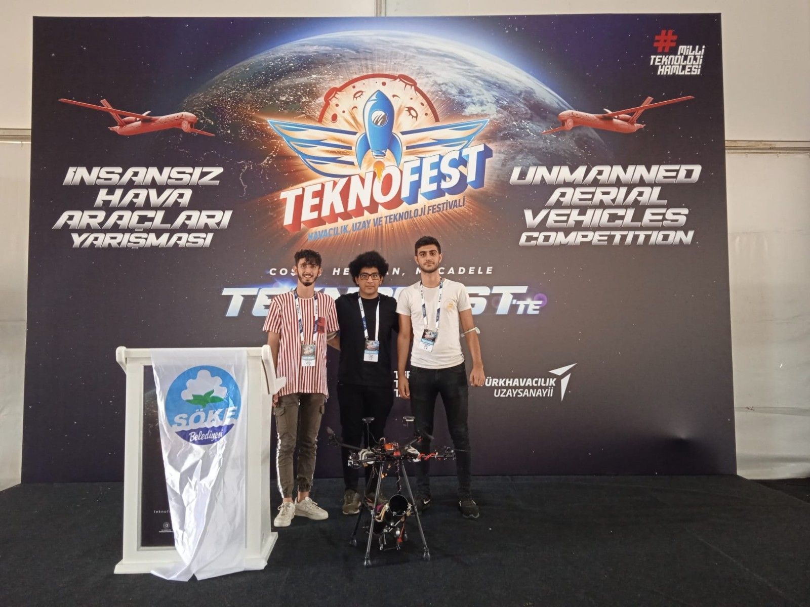 TÜBİTAK tarafından bu yıl ilk kez düzenlenen Uluslararası Serbest Görev İnsansız Hava Aracı (İHA) kategorisinde başvuru yapan 248 takımdan katılım hakkı kazanan Polonya ve Pakistan olmak üzere 2 uluslararası takım ile 66 ulusal takım yarışmalarda yer aldı. Bu heyecanı yaşayan takımlardan biri de öğrencisi Berke Üçülcüm, Emrah Arslan ve Diyar Zor'dan oluşan "Dranos İHA" adlı takım oldu. Söke Belediye Başkanı Levent Tuncel'in de katkılarıyla yarışmanın finaline katılan gençler, elde ettikleri beşincilik derecesiyle gümüş madalya almaya hak kazanarak, büyük sevinç yaşadı. Takım Kaptanı Emrah Arslan yaptığı açıklamada; kendilerine katkı sağlayan Söke Belediye Başkanı Levent Tuncel, Bodrum Belediyesi ve Muğla Üniversitesi Rektörlüğü'ne teşekkür etti.