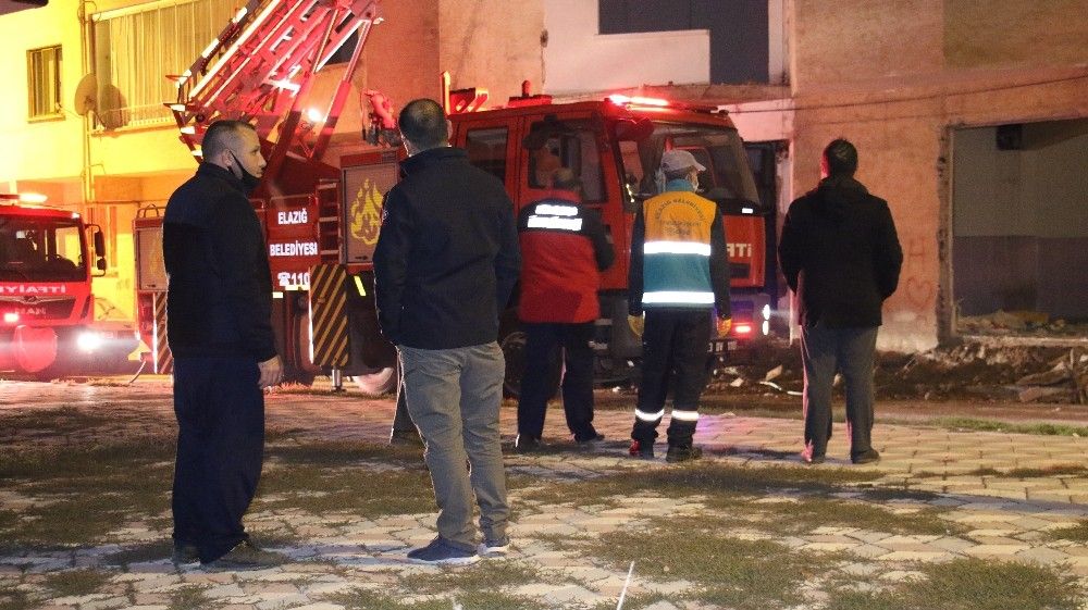 Elazığ'da depremde hasar alarak boşaltılan bir binada çıkan yangın itfaiye ekipleri tarafından söndürüldü. Bazı vatandaşlar ise sokağa çıkma kısıtlamasına rağmen dışarı çıkarak çalışmaları izledi.