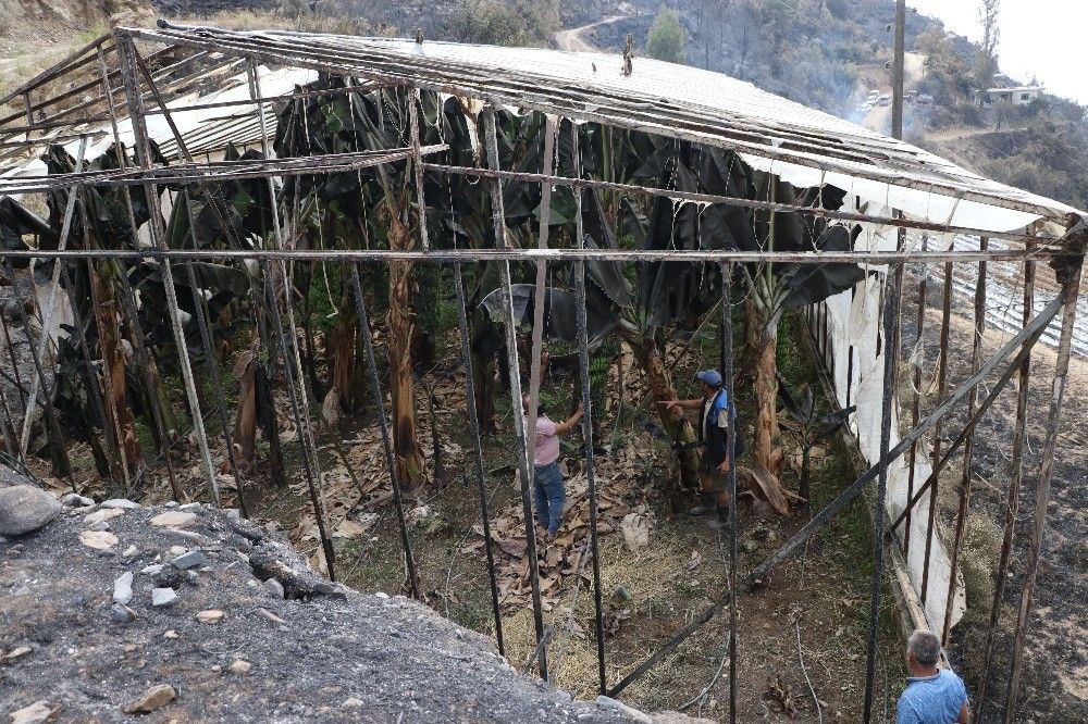 Yangında 100 hektarın üzerinde orman alanı yanarken, çok sayıda muz serası, hayvan ve ev zarar gördü. Yangının zarar verdiği bölgelerde hasar tespit çalışması devam ederken, vatandaşlar devletten yardım bekliyor.