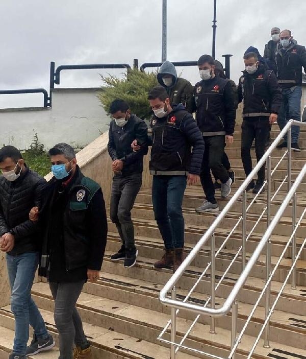 ele geçirildi. Polisteki işlemlerinin ardından bugün adliyeye sevk edilen şüphelilerden M.Y. E.M., A.D., Y.S. ve A.K., tutuklandı. Diğer 1 şüpheli ise adli kontrol şartıyla serbest bırakıldı.