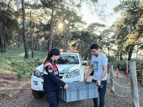 Muğla İl Jandarma Komutanlığı Çevre, Doğa ve Hayvanları Koruma Timi (HAYDİ) ekipleri, Marmaris ilçesi kıyı şeridinde yaralı 'chelonia mydas' cinsi yeşil deniz kaplumbağası bulunduğu ihbarını aldı. Kısa sürede bölgeye ulaşan görevliler, yavru kaplumbağayı bulunduğu yerden alıp, Ortaca'nın Dalyan Mahallesi'nde bulunan Deniz Kaplumbağaları Araştırma, Kurtarma ve Rehabilitasyon Merkezi'ne (DEKAMER) teslim etti. Sağ ön yüzgeci ve boynunda misinaya bağlı kesiklerin olduğu belirlenen kaplumbağa tedavi altına alındı. (DHA)