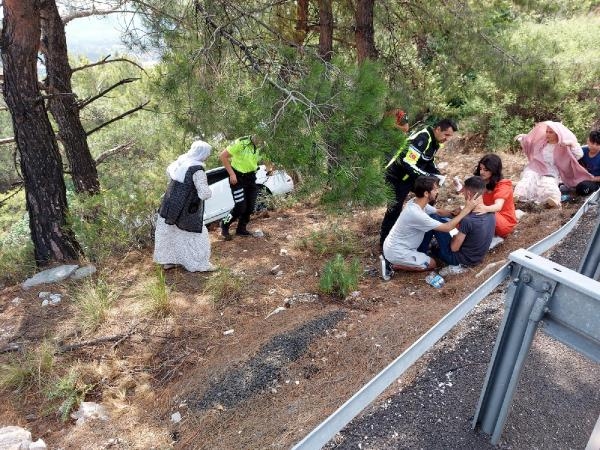 MUĞLA-Antalya kara yolu Sakar Geçidi'nde şarampole yuvarlanan otomobil ağaca çarparak durdu. Kazada yaralanan 6 kişiye ilk müdahaleyi olay yerinden motosikletle geçen Başhekim Turhan Togan ile sağlık ekipleri yaptı.