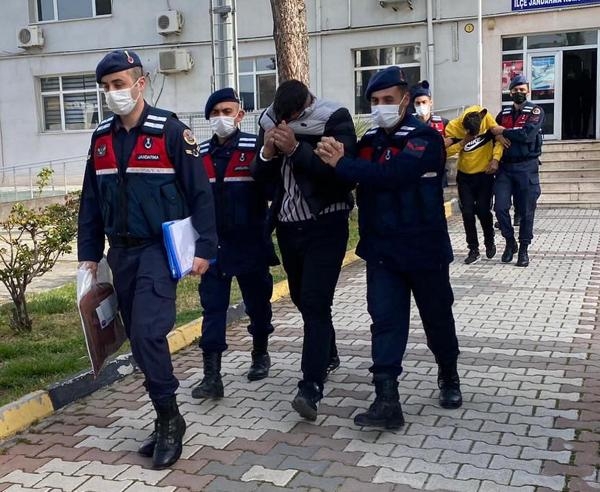 İZMİR'in Urla, Aliağa, Bayındır ve Menemen ilçelerinde yardım dağıtma bahanesiyle hırsızlık yaptıkları belirlenip, jandarma tarafından gözaltına alınan 3 şüpheli sevk edildikleri adliyede tutuklandı.
