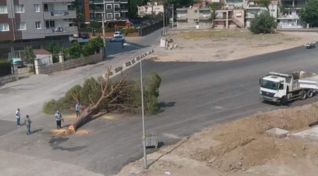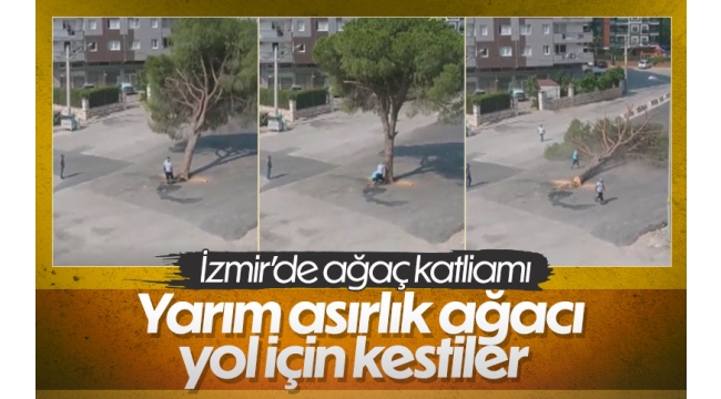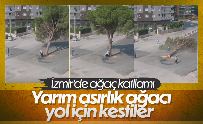 İzmir’in Karşıyaka ilçesinde, yol yapımı sırasında İzmir Büyükşehir Belediyesi ekipleri yarım asırlık ağacı kesmesine AK Parti’den tepki geldi.